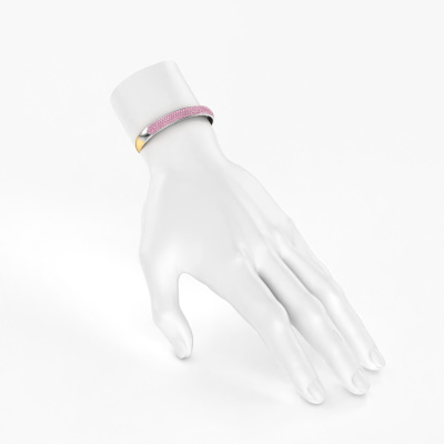 What a stunning bangle! The strap is pave set with pink sapphire which seem to have no beginning nor end. An extraordinary eye-catcher with an special, exclusive appearance. This exclusive gold bangle is easily combined with different styles and can be customized to fit yours. In total 1.4 mm pink sapphire is set. These are selected with great care and set with the utmost care by our goldsmith. By lining the [stone_plural_additional] equally, light reflects evenly from every angle which gives it an extra shine. Light reflection on your bangle is checked constantly to ensure the effect is enhanced. In the end you get an exquisite, uniquely paved pink sapphire bangle, made especially for you! The length of this Emely 8mm pink sapphire bangle usually is about 19cm. Feel free to contact us for any adjustments on length. Prices may vary. What could possibly be more beautiful than a personally designed exclusive bangle, handmade by yours truly? Please, feel free to customize each model by choosing different precious metals and gemstones. This makes your bangle truly unique. This bangle can be customized to your liking. It goes without saying that you can also ask us for help. We are more than willing to assist in designing your exclusive bangle. If you like but still have specific wishes concerning customizing your design, such as adding a gemstone which isn't mentioned in the list, feel free to contact us. We will gladly inform you on different options.Our team of talented, passionate designers add new bangle designs to our online collection daily. Our objective in doing so, is to be able to offer you a wide variety of jewels. Please feel free to request a quote if you have specific wishes for your bangle. We guarantee to make you an offer you can't refuse.By using a combination of the latest modern techniques, combined with ancient crafting, we can make all our bangles in our own studio. Each jewel is made to order. This is advantageous because we can offer you a price you won't find anywhere else.To make it easier for you, we offer a 30 day return policy. Check our terms and conditions.