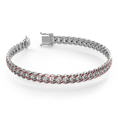 Special white gold Cuban bracelet with ruby! These bracelets are the hit in America and slowly coming to Europe. This oval Cuban bracelet is solid and has a width of ±0.31 in and a thickness of ±0.09in. At the details you can find the weight. Our collection of Cuban bracelets consists of many types and sizes all solid and hollow. This Cuban bracelet is also called an iced Cuban bracelet. In the Netherlands, the bracelet is also called gourmet bracelet or in America cuban miami bracelet.Every day, new bracelet designs are added to the site by our team of talented and passionate designers. We strive to offer as varied a collection as possible. Do you have an idea for this bracelet, you want 1 link in a different colour, or 1 or more links with diamonds or even more special with for example a special logo or tag processed in the bracelet please contact us, we like to think with you to make your bracelet extra special. We make you an offer in terms of price and quality that you will not be able to say no to!By using a combination of the latest modern techniques, combined with ancient crafting, we can make all our bracelets in our own studio. Each jewel is made to order. This is advantageous because we can offer you a price you won't find anywhere else.To make it easier for you, we offer a 30 day return policy. Check our terms and conditions.