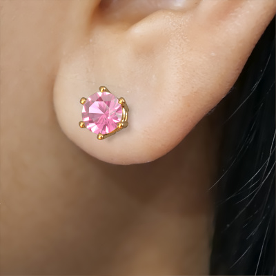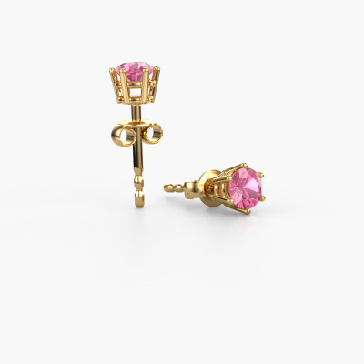 Solitaire earrings are classic yet fashionable pieces of jewellery. In solitaire earrings, the prong setting is open and only 1 stone is set, which helps reflect light on the gemstone from every angle. Because the pink sapphire are positioned higher, these classic earrings become truly eye-catching. We carefully create each detail of these solitaire earrings by hand. Our expert goldsmiths set the pink sapphire in these gold earrings with the utmost precision, so light reflects evenly from every angle. The earrings are set with 4.2 mm round pink sapphire. The Fay earrings are made just for you by our master goldsmith in our own artisan studio.. As soon as you finished designing your classic earrings with our online tool, our goldsmiths will start their creative process of making your earrings. This will be done with passion and care, according ancient crafting. On top of that, our jewels are made of eco-friendly materials. If you want specific changes made to your Fay earrings, that are unavailable in our online tool, please feel free to contact our expert designers. After receiving your order, our goldsmiths will start the creative process of making your Fay earrings. We don't keep stock. This is advantageous because these costs will not be passed on to you. Therefore, we can offer jewellery at exceptionally low prices. To make it easier for you, we offer a 30 day return policy. Check our terms and conditions.
