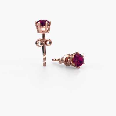 Solitaire earrings are classic yet fashionable pieces of jewellery. In solitaire earrings, the prong setting is open and only 1 stone is set, which helps reflect light on the gemstone from every angle. Because the rhodolite are positioned higher, these classic earrings become truly eye-catching. We carefully create each detail of these solitaire earrings by hand. Our expert goldsmiths set the rhodolite in these rose gold earrings with the utmost precision, so light reflects evenly from every angle. The earrings are set with 4.2 mm round rhodolite. The Fay earrings are made just for you by our master goldsmith in our own artisan studio.. As soon as you finished designing your classic earrings with our online tool, our goldsmiths will start their creative process of making your earrings. This will be done with passion and care, according ancient crafting. On top of that, our jewels are made of eco-friendly materials. If you want specific changes made to your Fay earrings, that are unavailable in our online tool, please feel free to contact our expert designers. After receiving your order, our goldsmiths will start the creative process of making your Fay earrings. We don't keep stock. This is advantageous because these costs will not be passed on to you. Therefore, we can offer jewellery at exceptionally low prices. To make it easier for you, we offer a 30 day return policy. Check our terms and conditions.