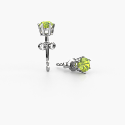 Solitaire earrings are classic yet fashionable pieces of jewellery. In solitaire earrings, the prong setting is open and only 1 stone is set, which helps reflect light on the gemstone from every angle. Because the peridot are positioned higher, these classic earrings become truly eye-catching. We carefully create each detail of these solitaire earrings by hand. Our expert goldsmiths set the peridot in these white gold earrings with the utmost precision, so light reflects evenly from every angle. The earrings are set with 4.2 mm round peridot. The Fay earrings are made just for you by our master goldsmith in our own artisan studio.. As soon as you finished designing your classic earrings with our online tool, our goldsmiths will start their creative process of making your earrings. This will be done with passion and care, according ancient crafting. On top of that, our jewels are made of eco-friendly materials. If you want specific changes made to your Fay earrings, that are unavailable in our online tool, please feel free to contact our expert designers. After receiving your order, our goldsmiths will start the creative process of making your Fay earrings. We don't keep stock. This is advantageous because these costs will not be passed on to you. Therefore, we can offer jewellery at exceptionally low prices. To make it easier for you, we offer a 30 day return policy. Check our terms and conditions.