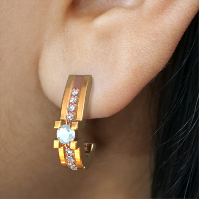Each modern woman should own her own pair of modern earrings. Buy them from DiamondsByMe. In order to create our exquisite jewels, our expert goldsmiths use the best precious metals and the finest gemstones. Take this modern rose gold aquamarine set of Myrthe earrings, for example. Each aquamarine is selected with great care, because we believe your earrings should only be adorned with the finest aquamarine gemstones. Our artisan goldsmiths create your earrings in our own crafting studio and they set the aquamarine in the earrings with the utmost care. Subsequently, they are crafted and polished until it is evident: the perfect earrings are done! The Myrthe earrings are made to embellish your ears. Each jewel is lovingly made by hand by our goldsmiths.. The best part of these elegant earrings is that you can customize it to your own liking. Your style, your choice, your earrings. On top of that, your modern rose gold earrings will be made by hand with eco-friendly materials! Please feel free to easily customize the earrings, using our online tool. Because we design and deliver our own earrings, we can offer you earrings at a price you won't find anywhere else. earrings are made to order, which helps prevent excess supplies, so we can make you a great price offer. We understand it feels risky, buying your earrings online, but we will gladly assist in the designing process, taking your budget into consideration. To make it easier for you, we offer a 30 day return policy. Check our terms and conditions.