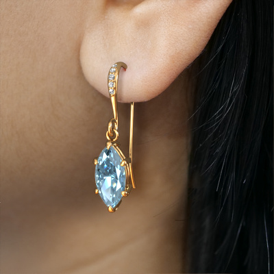 Each modern woman should own her own pair of fashionable drop earrings. Buy them from DiamondsByMe. In order to create our exquisite jewels, our expert goldsmiths use the best precious metals and the finest gemstones. Take this fashionable gold blue lab grown diamond set of Laurie MRQ 2 drop earrings, for example. Each blue lab grown diamond is selected with great care, because we believe your drop earrings should only be adorned with the finest blue lab grown diamonds gemstones. Our artisan goldsmiths create your drop earrings in our own crafting studio and they set the blue lab grown diamond in the drop earrings with the utmost care. Subsequently, they are crafted and polished until it is evident: the perfect drop earrings are done! The Laurie MRQ 2 earrings are passionately made by one of our master goldsmiths.. Customized fashionable affordable drop earrings are the perfect gift! New exquisite designs are added daily by our team of passionate goldsmiths. And each design can be customized. Simply customize the precious metals and the colour of gemstones which will be used, for example. This makes your design of the fashionable Laurie MRQ 2 drop earrings truly unique! After receiving your order, our goldsmiths will passionately start the creative process of making your drop earrings in our own studio. Because we don't have a big stockpile, these costs will not be passed on to you. Our pricing is proof of that! We offer top quality jewels at lowest price, guaranteed. To make it easier for you, we offer a 30 day return policy. Check our terms and conditions.