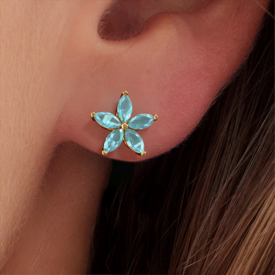 How would you describe your style? Are you looking for something slightly different? These unique cluster gold stud earrings are unique and created by our expert goldsmiths. These unique stud earrings are set with blue topaz. Each of the blue topaz is carefully selected, because we believe your stud earrings should be adorned with nothing but the most exquisite gemstones. Wouldn't you agree? The Sylvana earrings are made just for you by our master goldsmith in our own artisan studio.. Our goldsmiths passionately create your customized stud earrings to your liking with the utmost care. The gold set stud earrings, as shown here, can be customized using our online tool. Feel free to ask our jewel designers for assistance if you want changes made which are unavailable in our online tool. We are happy to answer your questions.Are you on a budget? Please feel free to contact us, so we can go discuss your options. We offer our stud earrings at guaranteed best price, because we make them to order. You won't find such a price anywhere else! To make it easier for you, we offer a 30 day return policy. Check our terms and conditions.