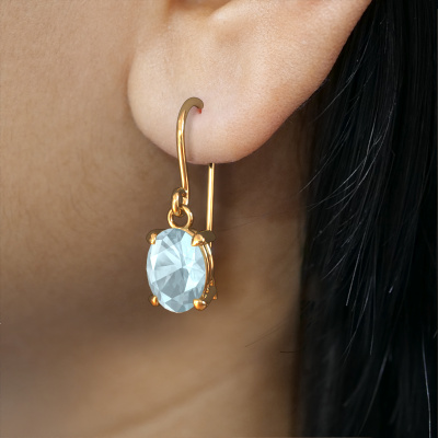 This is our set of fashionable Laurie OVL 1 drop earrings. In this example the drop earrings are set with oval aquamarine. Each of our aquamarine gemstones is carefully selected and positioned in your drop earrings with great precision so light hits the aquamarine from every angle. We believe these charming gold drop earrings look best set with coloured gemstones. But that is entirely up to you. The best part of these charming drop earrings is that you can customize it to your own liking. Your style, your choice, your drop earrings. On top of that, your fashionable gold drop earrings will be made by hand with eco-friendly materials! Please feel free to easily customize the drop earrings, using our online tool.By using a combination of the latest modern techniques, combined with ancient crafting, we can make all our drop earrings in our own studio. Each jewel is made to order. This is advantageous because we can offer you a price you won't find anywhere else.To make it easier for you, we offer a 30 day return policy. Check our terms and conditions.