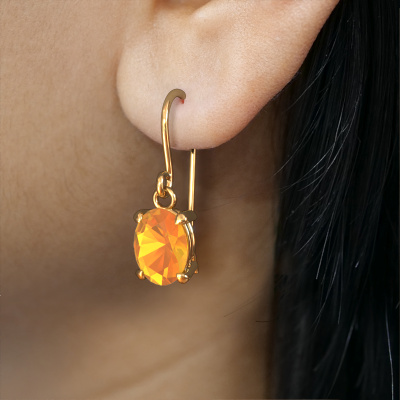 This is our set of fashionable Laurie OVL 1 drop earrings. In this example the drop earrings are set with oval citrin. Each of our citrin gemstones is carefully selected and positioned in your drop earrings with great precision so light hits the citrin from every angle. We believe these charming gold drop earrings look best set with coloured gemstones. But that is entirely up to you. The best part of these charming drop earrings is that you can customize it to your own liking. Your style, your choice, your drop earrings. On top of that, your fashionable gold drop earrings will be made by hand with eco-friendly materials! Please feel free to easily customize the drop earrings, using our online tool.By using a combination of the latest modern techniques, combined with ancient crafting, we can make all our drop earrings in our own studio. Each jewel is made to order. This is advantageous because we can offer you a price you won't find anywhere else.To make it easier for you, we offer a 30 day return policy. Check our terms and conditions.