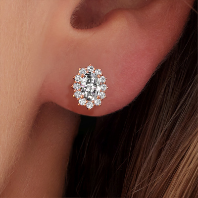 If you are looking for classic and personal earrings, then these will fit you perfectly. You have the option to add your birthstones to these earrings. Each month has its own birthstone. You may use your own birthstone gemstone or that of your children. A priceless gift, even if it is for yourself. Our expert jeweller will set the selected stones in your earrings with utter precision, so light reflects evenly from every angle. Here, 0.60 crt oval diamonds gemstones were used to adorn these rose gold cluster Margien earrings. The Margien earrings are unique pieces of jewellery because they can be customized to your liking.. The best part of these cluster earrings is that you can customize it to your own liking. Your style, your choice, your earrings. On top of that, your classic rose gold earrings will be made by hand with eco-friendly materials! Please feel free to easily customize the earrings, using our online tool. Are you on a budget? Please feel free to contact us, so we can go discuss your options. We offer our earrings at guaranteed best price, because we make them to order. You won't find such a price anywhere else!To make it easier for you, we offer a 30 day return policy. Check our terms and conditions.