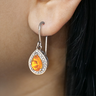 This is our set of trendy Beverlee 1 drop earrings. In this example the drop earrings are set with pear citrin. Each of our citrin gemstones is carefully selected and positioned in your drop earrings with great precision so light hits the citrin from every angle. We believe these drop platinum drop earrings look best set with coloured gemstones. But that is entirely up to you. Our goldsmiths passionately create your customized drop earrings to your liking with the utmost care. The platinum set drop earrings, as shown here, can be customized using our online tool. Feel free to ask our jewel designers for assistance if you want changes made which are unavailable in our online tool. We are happy to answer your questions.After receiving your order, our goldsmiths will passionately start the creative process of making your drop earrings in our own studio. Because we don't have a big stockpile, these costs will not be passed on to you. Our pricing is proof of that! We offer top quality jewels at lowest price, guaranteed.To make it easier for you, we offer a 30 day return policy. Check our terms and conditions.