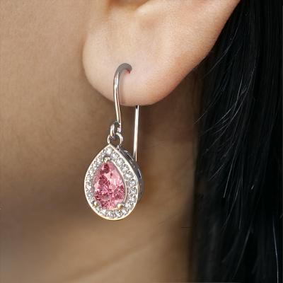 This is our set of trendy Beverlee 1 drop earrings. In this example the drop earrings are set with pear pink lab grown diamond. Each of our pink lab grown diamonds gemstones is carefully selected and positioned in your drop earrings with great precision so light hits the pink lab grown diamond from every angle. We believe these drop white gold drop earrings look best set with coloured gemstones. But that is entirely up to you. Our goldsmiths passionately create your customized drop earrings to your liking with the utmost care. The white gold set drop earrings, as shown here, can be customized using our online tool. Feel free to ask our jewel designers for assistance if you want changes made which are unavailable in our online tool. We are happy to answer your questions.After receiving your order, our goldsmiths will passionately start the creative process of making your drop earrings in our own studio. Because we don't have a big stockpile, these costs will not be passed on to you. Our pricing is proof of that! We offer top quality jewels at lowest price, guaranteed.To make it easier for you, we offer a 30 day return policy. Check our terms and conditions.