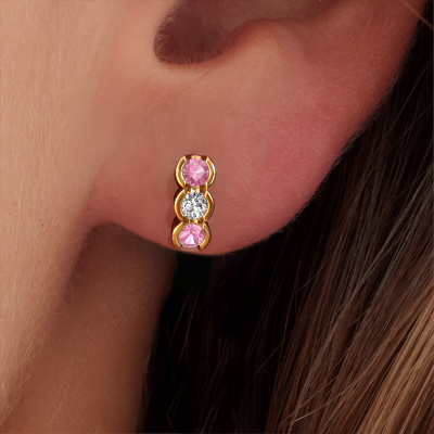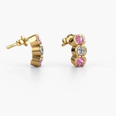 How would you describe your style? Are you looking for something slightly different? These trendy elegant gold earrings are unique and created by our expert goldsmiths. These trendy earrings are set with pink sapphire. Each of the pink sapphire is carefully selected, because we believe your earrings should be adorned with nothing but the most exquisite gemstones. Wouldn't you agree? The Lotte made just for you, with great attention to detail and design.. Our goldsmiths passionately create your customized earrings to your liking with the utmost care. The gold set earrings, as shown here, can be customized using our online tool. Feel free to ask our jewel designers for assistance if you want changes made which are unavailable in our online tool. We are happy to answer your questions.By using a combination of the latest modern techniques, combined with ancient crafting, we can make all our earrings in our own studio. Each jewel is made to order. This is advantageous because we can offer you a price you won't find anywhere else. To make it easier for you, we offer a 30 day return policy. Check our terms and conditions.