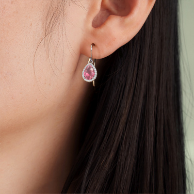 If you are looking for traditional and personal drop earrings, then these will fit you perfectly. You have the option to add your birthstones to these drop earrings. Each month has its own birthstone. You may use your own birthstone gemstone or that of your children. A priceless gift, even if it is for yourself. Our expert jeweller will set the selected stones in your drop earrings with utter precision, so light reflects evenly from every angle. Here, 7x5 mm pear tourmaline pink gemstones were used to adorn these white gold elegant Seline per drop earrings. The Seline per earrings are unique pieces of jewellery because they can be customized to your liking.. As soon as you finished designing your traditional drop earrings with our online tool, our goldsmiths will start their creative process of making your drop earrings. This will be done with passion and care, according ancient crafting. On top of that, our jewels are made of eco-friendly materials. If you want specific changes made to your Seline per drop earrings, that are unavailable in our online tool, please feel free to contact our expert designers. Are you on a budget? Please feel free to contact us, so we can go discuss your options. We offer our drop earrings at guaranteed best price, because we make them to order. You won't find such a price anywhere else!To make it easier for you, we offer a 30 day return policy. Check our terms and conditions.