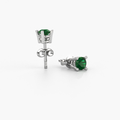 Solitaire stud earrings are classic yet fashionable pieces of jewellery. In solitaire stud earrings, the prong setting is open and only 1 stone is set, which helps reflect light on the gemstone from every angle. Because the emerald are positioned higher, these classic stud earrings become truly eye-catching. We carefully create each detail of these solitaire stud earrings by hand. Our expert goldsmiths set the emerald in these white gold stud earrings with the utmost precision, so light reflects evenly from every angle. The stud earrings are set with 4 mm round emerald. The Jannette earrings are unique pieces of jewellery because they can be customized to your liking.. What could possibly be more beautiful than personally designed classic stud earrings, handmade by yours truly? Please, feel free to customize each model by choosing different precious metals and gemstones. This makes your stud earrings truly unique. These stud earrings can be customized to your liking. It goes without saying that you can also ask us for help. We are more than willing to assist in designing your classic stud earrings. If you like but still have specific wishes concerning customizing your design, such as adding a gemstone which isn't mentioned in the list, feel free to contact us. We will gladly inform you on different options. By using a combination of the latest modern techniques, combined with ancient crafting, we can make all our stud earrings in our own studio. Each jewel is made to order. This is advantageous because we can offer you a price you won't find anywhere else. To make it easier for you, we offer a 30 day return policy. Check our terms and conditions.