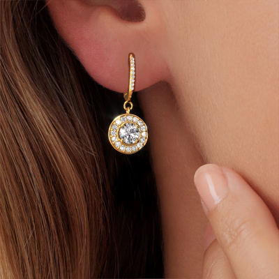 With a pair of exclusive drop earrings, every woman truly stands out. At DiamondsByMe, we create exclusive and extraordinary jewellery and we make use of the finest precious metals and gemstones. These exclusive gold drop earrings are a true work of art! Each tiny detail has been made with patience and passion by our expert jeweller. This requires a keen eye and skilful hand in order for the ring to be carefully created to perfection. And this is exactly what our expert jewellers strive for, perfection! The exquisite cz-stones are set in a way making them seem to shine even brighter. This gives the drop earrings an extra glamorous look. Shown above are our gold Ninette 2 drop earrings, set with round zirconia. The Ninette 2 earrings are unique pieces of jewellery because they can be customized to your liking.. How do you like these exclusive gold drop earrings? Simply customize this Ninette 2 drop earrings, using our online tool. Subsequently, your personal halo Ninette 2 drop earrings will be made by hand by our goldsmiths. Precious metals and gemstones can be customized to your liking. Do you have specific preferences which are unavailable in our online tool? Please feel free to contact us. We will customize your personal exclusive drop earrings to your liking. Because we design and deliver our own drop earrings, we can offer you drop earrings at a price you won't find anywhere else. drop earrings are made to order, which helps prevent excess supplies, so we can make you a great price offer. We understand it feels risky, buying your drop earrings online, but we will gladly assist in the designing process, taking your budget into consideration. To make it easier for you, we offer a 30 day return policy. Check our terms and conditions.