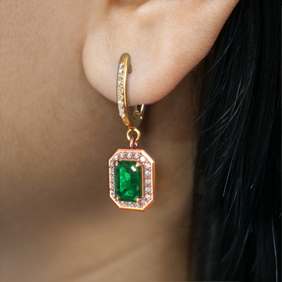 With a pair of exclusive drop earrings, every woman truly stands out. At DiamondsByMe, we create exclusive and extraordinary jewellery and we make use of the finest precious metals and gemstones. These exclusive rose gold drop earrings are a true work of art! Each tiny detail has been made with patience and passion by our expert jeweller. This requires a keen eye and skilful hand in order for the ring to be carefully created to perfection. And this is exactly what our expert jewellers strive for, perfection! The exquisite emerald are set in a way making them seem to shine even brighter. This gives the drop earrings an extra glamorous look. Shown above are our rose gold Dodie 2 drop earrings, set with emerald cut emerald. The Dodie 2 earrings are made just for you by our master goldsmith in our own artisan studio.. How do you like these exclusive rose gold drop earrings? Simply customize this Dodie 2 drop earrings, using our online tool. Subsequently, your personal halo Dodie 2 drop earrings will be made by hand by our goldsmiths. Precious metals and gemstones can be customized to your liking. Do you have specific preferences which are unavailable in our online tool? Please feel free to contact us. We will customize your personal exclusive drop earrings to your liking. Are you on a budget? Please feel free to contact us, so we can go discuss your options. We offer our drop earrings at guaranteed best price, because we make them to order. You won't find such a price anywhere else! To make it easier for you, we offer a 30 day return policy. Check our terms and conditions.