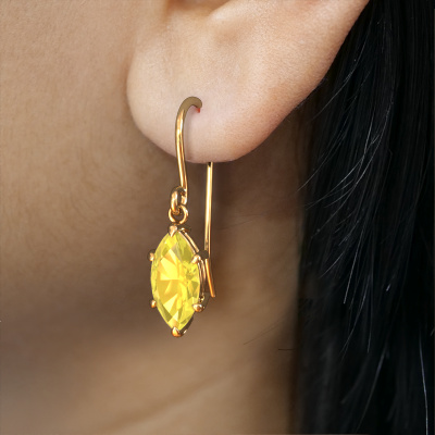 What could possibly be more stunning than a pair of stunning drop earrings? These gold Laurie MRQ 1 drop earrings are a true eye-catcher. These affordable drop earrings are set with marquise yellow sapphire. We collaborate with the best suppliers of gemstones and they select our gemstones with great care. Your drop earrings are made by hand in our own artisan studio by our expert goldsmiths. Customized fashionable affordable drop earrings are the perfect gift! New exquisite designs are added daily by our team of passionate goldsmiths. And each design can be customized. Simply customize the precious metals and the colour of gemstones which will be used, for example. This makes your design of the fashionable Laurie MRQ 1 drop earrings truly unique!After receiving your order, our goldsmiths will passionately start the creative process of making your drop earrings in our own studio. Because we don't have a big stockpile, these costs will not be passed on to you. Our pricing is proof of that! We offer top quality jewels at lowest price, guaranteed.To make it easier for you, we offer a 30 day return policy. Check our terms and conditions.