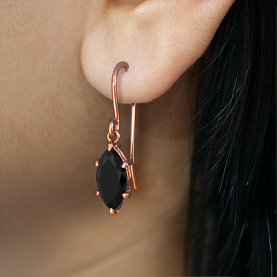 What could possibly be more stunning than a pair of stunning drop earrings? These rose gold Laurie MRQ 1 drop earrings are a true eye-catcher. These affordable drop earrings are set with marquise black diamond. We collaborate with the best suppliers of gemstones and they select our gemstones with great care. Your drop earrings are made by hand in our own artisan studio by our expert goldsmiths. Customized fashionable affordable drop earrings are the perfect gift! New exquisite designs are added daily by our team of passionate goldsmiths. And each design can be customized. Simply customize the precious metals and the colour of gemstones which will be used, for example. This makes your design of the fashionable Laurie MRQ 1 drop earrings truly unique!After receiving your order, our goldsmiths will passionately start the creative process of making your drop earrings in our own studio. Because we don't have a big stockpile, these costs will not be passed on to you. Our pricing is proof of that! We offer top quality jewels at lowest price, guaranteed.To make it easier for you, we offer a 30 day return policy. Check our terms and conditions.