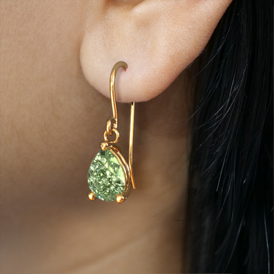 If you are looking for trendy and personal drop earrings, then these will fit you perfectly. You have the option to add your birthstones to these drop earrings. Each month has its own birthstone. You may use your own birthstone gemstone or that of your children. A priceless gift, even if it is for yourself. Our expert jeweller will set the selected stones in your drop earrings with utter precision, so light reflects evenly from every angle. Here, 8x6 mm pear green lab grown diamonds gemstones were used to adorn these gold fine Laurie PER 1 drop earrings. The Laurie PER 1 earrings are made by a team of passionate goldsmiths and designers. This will make your unique crown jewel eye-catching.. The best part of these fine drop earrings is that you can customize it to your own liking. Your style, your choice, your drop earrings. On top of that, your trendy gold drop earrings will be made by hand with eco-friendly materials! Please feel free to easily customize the drop earrings, using our online tool. By using our modern techniques, we can design and customize the finest quality jewels with the utmost care for you. Our drop earrings are always priced 30 percent lower than other jewellers. We make drop earrings to order so we don't have to maintain a large stock. If you have a certain budget, we are more than happy to advice you accordingly.To make it easier for you, we offer a 30 day return policy. Check our terms and conditions.