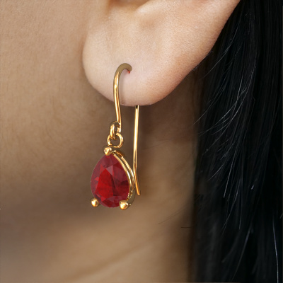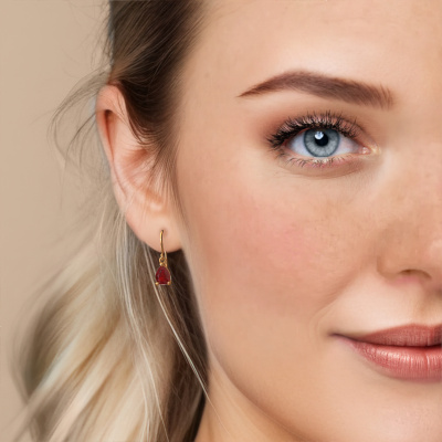 If you are looking for trendy and personal drop earrings, then these will fit you perfectly. You have the option to add your birthstones to these drop earrings. Each month has its own birthstone. You may use your own birthstone gemstone or that of your children. A priceless gift, even if it is for yourself. Our expert jeweller will set the selected stones in your drop earrings with utter precision, so light reflects evenly from every angle. Here, 8x6 mm pear ruby gemstones were used to adorn these gold fine Laurie PER 1 drop earrings. The Laurie PER 1 earrings are made by a team of passionate goldsmiths and designers. This will make your unique crown jewel eye-catching.. The best part of these fine drop earrings is that you can customize it to your own liking. Your style, your choice, your drop earrings. On top of that, your trendy gold drop earrings will be made by hand with eco-friendly materials! Please feel free to easily customize the drop earrings, using our online tool. By using our modern techniques, we can design and customize the finest quality jewels with the utmost care for you. Our drop earrings are always priced 30 percent lower than other jewellers. We make drop earrings to order so we don't have to maintain a large stock. If you have a certain budget, we are more than happy to advice you accordingly.To make it easier for you, we offer a 30 day return policy. Check our terms and conditions.