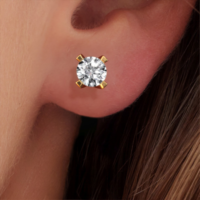 Solitaire stud earrings are classic yet fashionable pieces of jewellery. In solitaire stud earrings, the prong setting is open and only 1 stone is set, which helps reflect light on the gemstone from every angle. Because the diamonds are positioned higher, these classic stud earrings become truly eye-catching. We carefully create each detail of these solitaire stud earrings by hand. Our expert goldsmiths set the diamonds in these gold stud earrings with the utmost precision, so light reflects evenly from every angle. The stud earrings are set with 1.00 crt round diamonds. The Isa earrings are passionately made by one of our master goldsmiths.. Our goldsmiths passionately create your customized stud earrings to your liking with the utmost care. The gold set stud earrings, as shown here, can be customized using our online tool. Feel free to ask our jewel designers for assistance if you want changes made which are unavailable in our online tool. We are happy to answer your questions. By using our modern techniques, we can design and customize the finest quality jewels with the utmost care for you. Our stud earrings are always priced 30 percent lower than other jewellers. We make stud earrings to order so we don't have to maintain a large stock. If you have a certain budget, we are more than happy to advice you accordingly. To make it easier for you, we offer a 30 day return policy. Check our terms and conditions.