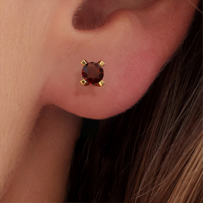 Solitaire stud earrings are classic yet fashionable pieces of jewellery. In solitaire stud earrings, the prong setting is open and only 1 stone is set, which helps reflect light on the gemstone from every angle. Because the garnet are positioned higher, these classic stud earrings become truly eye-catching. We carefully create each detail of these solitaire stud earrings by hand. Our expert goldsmiths set the garnet in these gold stud earrings with the utmost precision, so light reflects evenly from every angle. The stud earrings are set with 5 mm round garnet. The Isa earrings are passionately made by one of our master goldsmiths.. Our goldsmiths passionately create your customized stud earrings to your liking with the utmost care. The gold set stud earrings, as shown here, can be customized using our online tool. Feel free to ask our jewel designers for assistance if you want changes made which are unavailable in our online tool. We are happy to answer your questions. By using our modern techniques, we can design and customize the finest quality jewels with the utmost care for you. Our stud earrings are always priced 30 percent lower than other jewellers. We make stud earrings to order so we don't have to maintain a large stock. If you have a certain budget, we are more than happy to advice you accordingly. To make it easier for you, we offer a 30 day return policy. Check our terms and conditions.