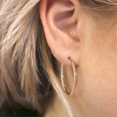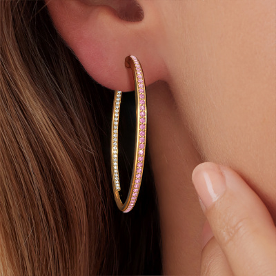 This set of best prices Sina 35mm hoop earrings are beautiful small hoop earrings to finish off your look. Our expert jewellers combine the latest techniques with ancient craftsmanship. They make your hoop earrings by hand in our own crafting studio. The pink sapphire of your choosing are set in your hoop earrings with the utmost precision, so light reflects evenly from every angle. In the end you get stunning, unique hoop earrings that match your own style perfectly! Take these gold hoop earrings set with pink sapphire 1.1 mm, for example. How do you like these luxury gold hoop earrings? Simply customize this Sina 35mm hoop earrings, using our online tool. Subsequently, your personal best prices Sina 35mm hoop earrings will be made by hand by our goldsmiths. Precious metals and gemstones can be customized to your liking. Do you have specific preferences which are unavailable in our online tool? Please feel free to contact us. We will customize your personal luxury hoop earrings to your liking.The Sina 35mm earrings are unique pieces of jewellery because they can be customized to your liking.By using our modern techniques, we can design and customize the finest quality jewels with the utmost care for you. Our hoop earrings are always priced 30 percent lower than other jewellers. We make hoop earrings to order so we don't have to maintain a large stock. If you have a certain budget, we are more than happy to advice you accordingly.To make it easier for you, we offer a 30 day return policy. Check our terms and conditions.