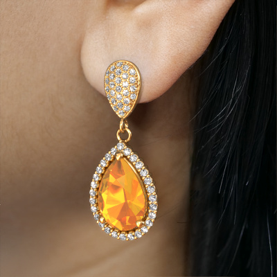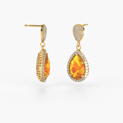 With a pair of exclusive drop earrings, every woman truly stands out. At DiamondsByMe, we create exclusive and extraordinary jewellery and we make use of the finest precious metals and gemstones. These exclusive gold drop earrings are a true work of art! Each tiny detail has been made with patience and passion by our expert jeweller. This requires a keen eye and skilful hand in order for the ring to be carefully created to perfection. And this is exactly what our expert jewellers strive for, perfection! The exquisite citrin are set in a way making them seem to shine even brighter. This gives the drop earrings an extra glamorous look. Shown above are our gold Tilly per 2 drop earrings, set with pear citrin. The Tilly per 2 earrings are made by a team of passionate goldsmiths and designers. This will make your unique crown jewel eye-catching.. Our goldsmiths passionately create your customized drop earrings to your liking with the utmost care. The gold set drop earrings, as shown here, can be customized using our online tool. Feel free to ask our jewel designers for assistance if you want changes made which are unavailable in our online tool. We are happy to answer your questions. Are you on a budget? Please feel free to contact us, so we can go discuss your options. We offer our drop earrings at guaranteed best price, because we make them to order. You won't find such a price anywhere else! To make it easier for you, we offer a 30 day return policy. Check our terms and conditions.