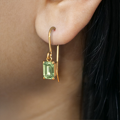 What could possibly be more stunning than a pair of stunning drop earrings? These gold Laurie EME 1 drop earrings are a true eye-catcher. These solitaire drop earrings are set with emerald cut green lab grown diamond. We collaborate with the best suppliers of gemstones and they select our gemstones with great care. Your drop earrings are made by hand in our own artisan studio by our expert goldsmiths. Our goldsmiths passionately create your customized drop earrings to your liking with the utmost care. The gold set drop earrings, as shown here, can be customized using our online tool. Feel free to ask our jewel designers for assistance if you want changes made which are unavailable in our online tool. We are happy to answer your questions.Are you on a budget? Please feel free to contact us, so we can go discuss your options. We offer our drop earrings at guaranteed best price, because we make them to order. You won't find such a price anywhere else!To make it easier for you, we offer a 30 day return policy. Check our terms and conditions.