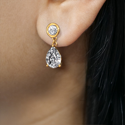 What could possibly be more stunning than a pair of stunning drop earrings? These gold Lacey PER drop earrings are a true eye-catcher. These graceful drop earrings are set with pear diamond. We collaborate with the best suppliers of gemstones and they select our gemstones with great care. Your drop earrings are made by hand in our own artisan studio by our expert goldsmiths. Customized fantasy graceful drop earrings are the perfect gift! New exquisite designs are added daily by our team of passionate goldsmiths. And each design can be customized. Simply customize the precious metals and the colour of gemstones which will be used, for example. This makes your design of the fantasy Lacey PER drop earrings truly unique!After receiving your order, our goldsmiths will passionately start the creative process of making your drop earrings in our own studio. Because we don't have a big stockpile, these costs will not be passed on to you. Our pricing is proof of that! We offer top quality jewels at lowest price, guaranteed.To make it easier for you, we offer a 30 day return policy. Check our terms and conditions.