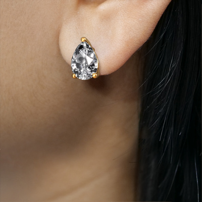 Solitaire stud earrings are both a traditional and a trendy piece of jewellery. Solitaire stud earrings have an open prong setting, therefore, light reflects beautifully on the gemstones. Because the diamonds are set high, these traditional stud earrings are a stunning eye-catcher. We will create your solitaire stud earrings by hand with the utmost care in our DiamondsByMe studio. For maximum shine, our goldsmith sets the diamonds in the gold stud earrings with great care. These solitaire stud earrings are set with pear diamond of 1.00 crt. De Sam PER earrings are passionately made by one of our master goldsmiths.. What could possibly be more beautiful than personally designed traditional stud earrings, handmade by yours truly? Please, feel free to customize each model by choosing different precious metals and gemstones. This makes your stud earrings truly unique. These stud earrings can be customized to your liking. It goes without saying that you can also ask us for help. We are more than willing to assist in designing your traditional stud earrings. If you like but still have specific wishes concerning customizing your design, such as adding a gemstone which isn't mentioned in the list, feel free to contact us. We will gladly inform you on different options.By using a combination of the latest modern techniques, combined with ancient crafting, we can make all our stud earrings in our own studio. Each jewel is made to order. This is advantageous because we can offer you a price you won't find anywhere else. To make it easier for you, we offer a 30 day return policy. Check our terms and conditions.