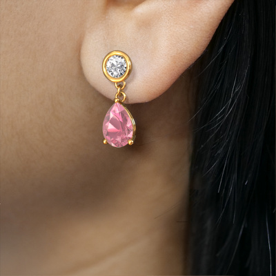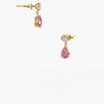 What could possibly be more stunning than a pair of stunning drop earrings? These gold Lacey PER drop earrings are a true eye-catcher. These graceful drop earrings are set with pear tourmaline pink. We collaborate with the best suppliers of gemstones and they select our gemstones with great care. Your drop earrings are made by hand in our own artisan studio by our expert goldsmiths. Customized fantasy graceful drop earrings are the perfect gift! New exquisite designs are added daily by our team of passionate goldsmiths. And each design can be customized. Simply customize the precious metals and the colour of gemstones which will be used, for example. This makes your design of the fantasy Lacey PER drop earrings truly unique!After receiving your order, our goldsmiths will passionately start the creative process of making your drop earrings in our own studio. Because we don't have a big stockpile, these costs will not be passed on to you. Our pricing is proof of that! We offer top quality jewels at lowest price, guaranteed.To make it easier for you, we offer a 30 day return policy. Check our terms and conditions.