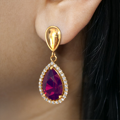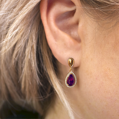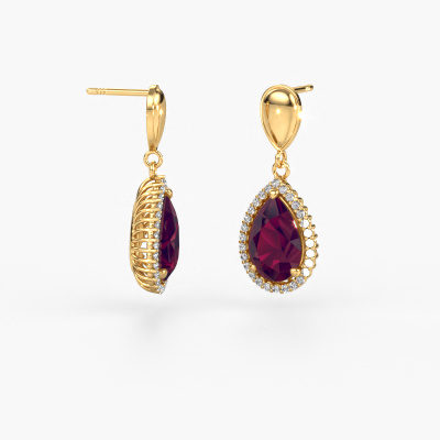 With a pair of exclusive drop earrings, every woman truly stands out. At DiamondsByMe, we create exclusive and extraordinary jewellery and we make use of the finest precious metals and gemstones. These exclusive gold drop earrings are a true work of art! Each tiny detail has been made with patience and passion by our expert jeweller. This requires a keen eye and skilful hand in order for the ring to be carefully created to perfection. And this is exactly what our expert jewellers strive for, perfection! The exquisite rhodolite are set in a way making them seem to shine even brighter. This gives the drop earrings an extra glamorous look. Shown above are our gold Tilly per 1 drop earrings, set with pear rhodolite. The Tilly per 1 earrings are made just for you by our master goldsmith in our own artisan studio.. As soon as you finished designing your exclusive drop earrings with our online tool, our goldsmiths will start their creative process of making your drop earrings. This will be done with passion and care, according ancient crafting. On top of that, our jewels are made of eco-friendly materials. If you want specific changes made to your Tilly per 1 drop earrings, that are unavailable in our online tool, please feel free to contact our expert designers. Because we design and deliver our own drop earrings, we can offer you drop earrings at a price you won't find anywhere else. drop earrings are made to order, which helps prevent excess supplies, so we can make you a great price offer. We understand it feels risky, buying your drop earrings online, but we will gladly assist in the designing process, taking your budget into consideration. To make it easier for you, we offer a 30 day return policy. Check our terms and conditions.