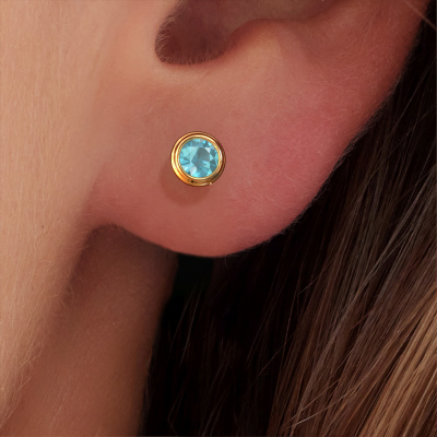 If you are looking for trendy and personal stud earrings, then these will fit you perfectly. You have the option to add your birthstones to these stud earrings. Each month has its own birthstone. You may use your own birthstone gemstone or that of your children. A priceless gift, even if it is for yourself. Our expert jeweller will set the selected stones in your stud earrings with utter precision, so light reflects evenly from every angle. Here, 4 mm round blue topaz gemstones were used to adorn these gold round Shemika stud earrings. The Shemika earrings are made just for you by our master goldsmith in our own artisan studio.. How do you like these trendy gold stud earrings? Simply customize this Shemika stud earrings, using our online tool. Subsequently, your personal round Shemika stud earrings will be made by hand by our goldsmiths. Precious metals and gemstones can be customized to your liking. Do you have specific preferences which are unavailable in our online tool? Please feel free to contact us. We will customize your personal trendy stud earrings to your liking. Because we design and deliver our own stud earrings, we can offer you stud earrings at a price you won't find anywhere else. stud earrings are made to order, which helps prevent excess supplies, so we can make you a great price offer. We understand it feels risky, buying your stud earrings online, but we will gladly assist in the designing process, taking your budget into consideration.To make it easier for you, we offer a 30 day return policy. Check our terms and conditions.