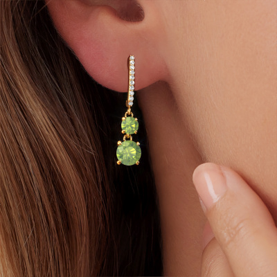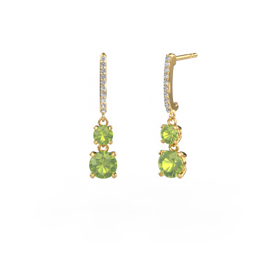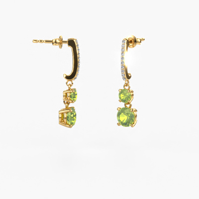 What could possibly be more stunning than a pair of stunning drop earrings? These gold Tanja 2 drop earrings are a true eye-catcher. These hanging drop earrings are set with round peridot. We collaborate with the best suppliers of gemstones and they select our gemstones with great care. Your drop earrings are made by hand in our own artisan studio by our expert goldsmiths. The best part of these hanging drop earrings is that you can customize it to your own liking. Your style, your choice, your drop earrings. On top of that, your exclusive gold drop earrings will be made by hand with eco-friendly materials! Please feel free to easily customize the drop earrings, using our online tool.Because we design and deliver our own drop earrings, we can offer you drop earrings at a price you won't find anywhere else. drop earrings are made to order, which helps prevent excess supplies, so we can make you a great price offer. We understand it feels risky, buying your drop earrings online, but we will gladly assist in the designing process, taking your budget into consideration.To make it easier for you, we offer a 30 day return policy. Check our terms and conditions.
