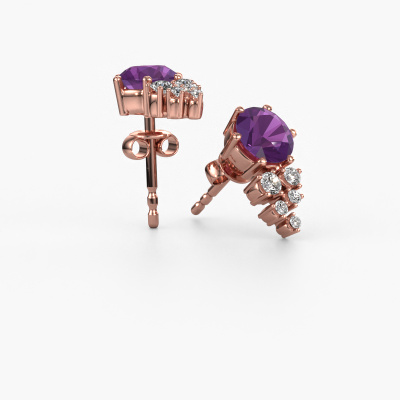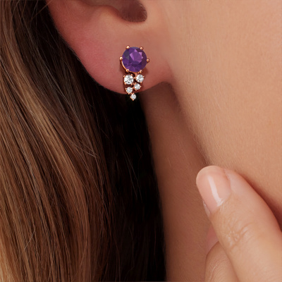 If you are looking for trendy and personal earrings, then these will fit you perfectly. You have the option to add your birthstones to these earrings. Each month has its own birthstone. You may use your own birthstone gemstone or that of your children. A priceless gift, even if it is for yourself. Our expert jeweller will set the selected stones in your earrings with utter precision, so light reflects evenly from every angle. Here, 6 mm round amethysten gemstones were used to adorn these rose gold graceful Royce earrings. The Royce earrings are passionately made by one of our master goldsmiths.. The best part of these graceful earrings is that you can customize it to your own liking. Your style, your choice, your earrings. On top of that, your trendy rose gold earrings will be made by hand with eco-friendly materials! Please feel free to easily customize the earrings, using our online tool. After receiving your order, our goldsmiths will passionately start the creative process of making your earrings in our own studio. Because we don't have a big stockpile, these costs will not be passed on to you. Our pricing is proof of that! We offer top quality jewels at lowest price, guaranteed.To make it easier for you, we offer a 30 day return policy. Check our terms and conditions.