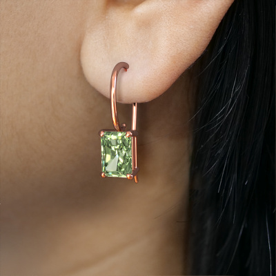 Each modern woman should own her own pair of exclusive drop earrings. Buy them from DiamondsByMe. In order to create our exquisite jewels, our expert goldsmiths use the best precious metals and the finest gemstones. Take this exclusive rose gold green lab grown diamond set of Cleo RAD drop earrings, for example. Each green lab grown diamond is selected with great care, because we believe your drop earrings should only be adorned with the finest green lab grown diamonds gemstones. Our artisan goldsmiths create your drop earrings in our own crafting studio and they set the green lab grown diamond in the drop earrings with the utmost care. Subsequently, they are crafted and polished until it is evident: the perfect drop earrings are done! The Cleo RAD earrings are made by a team of passionate goldsmiths and designers. This will make your unique crown jewel eye-catching.. How do you like these exclusive rose gold drop earrings? Simply customize this Cleo RAD drop earrings, using our online tool. Subsequently, your personal best prices Cleo RAD drop earrings will be made by hand by our goldsmiths. Precious metals and gemstones can be customized to your liking. Do you have specific preferences which are unavailable in our online tool? Please feel free to contact us. We will customize your personal exclusive drop earrings to your liking. By using our modern techniques, we can design and customize the finest quality jewels with the utmost care for you. Our drop earrings are always priced 30 percent lower than other jewellers. We make drop earrings to order so we don't have to maintain a large stock. If you have a certain budget, we are more than happy to advice you accordingly. To make it easier for you, we offer a 30 day return policy. Check our terms and conditions.