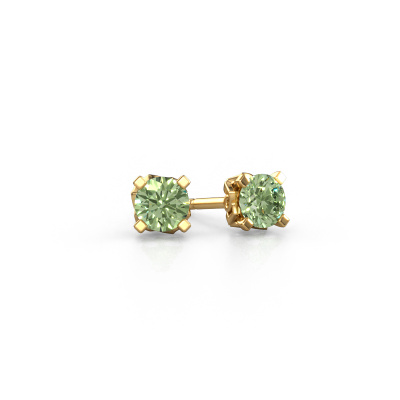 The solitaire gold Ize earrings are set with stunning round green lab grown diamonds. These earrings are ideally combined with coloured gemstones, but if you prefer other gemstones, feel free to choose from our collection. Our expert jewellers would love to create handmade earrings for you in our own crafting studio. We use a unique concept, a perfect combination of ancient craftsmanship and the latest modern techniques. This enables us to design your earrings to perfection. The earrings, as shown here, are set with green lab grown diamond 5 mm. The best part of these solitaire earrings is that you can customize it to your own liking. Your style, your choice, your earrings. On top of that, your vintage gold earrings will be made by hand with eco-friendly materials! Please feel free to easily customize the earrings, using our online tool.De Ize earrings are made just for you by our master goldsmith in our own artisan studio.Are you on a budget? Please feel free to contact us, so we can go discuss your options. We offer our earrings at guaranteed best price, because we make them to order. You won't find such a price anywhere else!To make it easier for you, we offer a 30 day return policy. Check our terms and conditions.