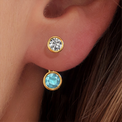 We believe this set of hanging Halle earrings, set with exquisite round blue topaz, look best when set with diamonds. But the best part is that you get to choose your own birthstones to customize the design Halle gold earrings to your liking. In the example shown above they are set with blue topaz 6 mm. Each gemstone is selected with great care and the utmost precision for a maximum shine. Because we design and deliver our own earrings, we can offer you earrings at a price you won't find anywhere else. earrings are made to order, which helps prevent excess supplies, so we can make you a great price offer. We understand it feels risky, buying your earrings online, but we will gladly assist in the designing process, taking your budget into consideration.To make it easier for you, we offer a 30 day return policy. Check our terms and conditions.