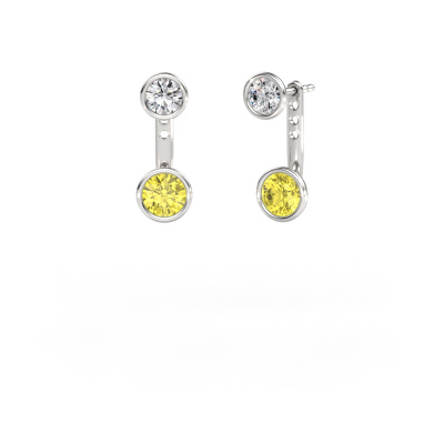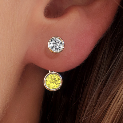We believe this set of hanging Halle earrings, set with exquisite round yellow lab grown diamond, look best when set with diamonds. But the best part is that you get to choose your own birthstones to customize the design Halle white gold earrings to your liking. In the example shown above they are set with yellow lab grown diamond 6 mm. Each gemstone is selected with great care and the utmost precision for a maximum shine. Because we design and deliver our own earrings, we can offer you earrings at a price you won't find anywhere else. earrings are made to order, which helps prevent excess supplies, so we can make you a great price offer. We understand it feels risky, buying your earrings online, but we will gladly assist in the designing process, taking your budget into consideration.To make it easier for you, we offer a 30 day return policy. Check our terms and conditions.