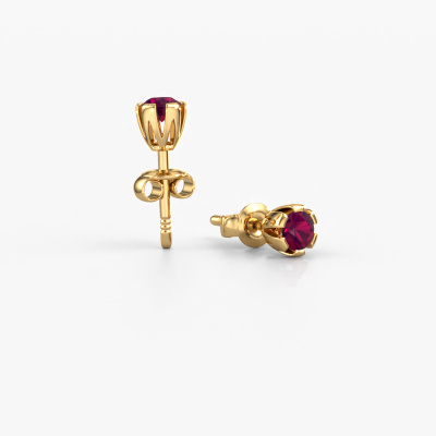 Solitaire stud earrings are classic yet fashionable pieces of jewellery. In solitaire stud earrings, the prong setting is open and only 1 stone is set, which helps reflect light on the gemstone from every angle. Because the rhodolite are positioned higher, these classic stud earrings become truly eye-catching. We carefully create each detail of these solitaire stud earrings by hand. Our expert goldsmiths set the rhodolite in these gold stud earrings with the utmost precision, so light reflects evenly from every angle. The stud earrings are set with 4 mm round rhodolite. The Julia earrings are passionately made by one of our master goldsmiths.. The best part of these light stud earrings is that you can customize it to your own liking. Your style, your choice, your stud earrings. On top of that, your classic gold stud earrings will be made by hand with eco-friendly materials! Please feel free to easily customize the stud earrings, using our online tool. By using our modern techniques, we can design and customize the finest quality jewels with the utmost care for you. Our stud earrings are always priced 30 percent lower than other jewellers. We make stud earrings to order so we don't have to maintain a large stock. If you have a certain budget, we are more than happy to advice you accordingly. To make it easier for you, we offer a 30 day return policy. Check our terms and conditions.