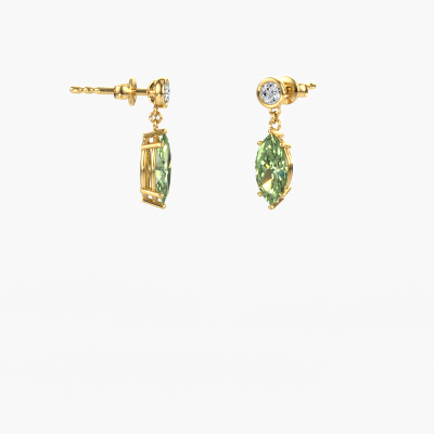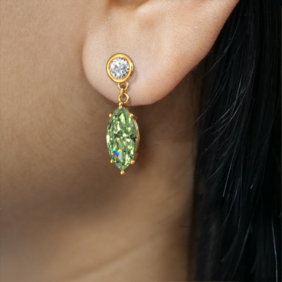 What could possibly be more stunning than a pair of stunning drop earrings? These gold Lacey MRQ drop earrings are a true eye-catcher. These affordable drop earrings are set with marquise green lab grown diamond. We collaborate with the best suppliers of gemstones and they select our gemstones with great care. Your drop earrings are made by hand in our own artisan studio by our expert goldsmiths. The best part of these affordable drop earrings is that you can customize it to your own liking. Your style, your choice, your drop earrings. On top of that, your modern gold drop earrings will be made by hand with eco-friendly materials! Please feel free to easily customize the drop earrings, using our online tool.By using our modern techniques, we can design and customize the finest quality jewels with the utmost care for you. Our drop earrings are always priced 30 percent lower than other jewellers. We make drop earrings to order so we don't have to maintain a large stock. If you have a certain budget, we are more than happy to advice you accordingly.To make it easier for you, we offer a 30 day return policy. Check our terms and conditions.