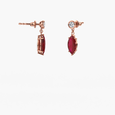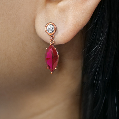 What could possibly be more stunning than a pair of stunning drop earrings? These rose gold Lacey MRQ drop earrings are a true eye-catcher. These affordable drop earrings are set with marquise ruby. We collaborate with the best suppliers of gemstones and they select our gemstones with great care. Your drop earrings are made by hand in our own artisan studio by our expert goldsmiths. The best part of these affordable drop earrings is that you can customize it to your own liking. Your style, your choice, your drop earrings. On top of that, your modern rose gold drop earrings will be made by hand with eco-friendly materials! Please feel free to easily customize the drop earrings, using our online tool.By using our modern techniques, we can design and customize the finest quality jewels with the utmost care for you. Our drop earrings are always priced 30 percent lower than other jewellers. We make drop earrings to order so we don't have to maintain a large stock. If you have a certain budget, we are more than happy to advice you accordingly.To make it easier for you, we offer a 30 day return policy. Check our terms and conditions.