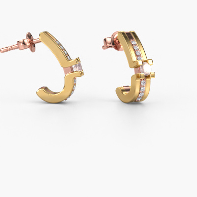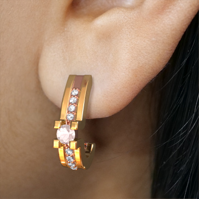 Each modern woman should own her own pair of modern earrings. Buy them from DiamondsByMe. In order to create our exquisite jewels, our expert goldsmiths use the best precious metals and the finest gemstones. Take this modern rose gold morganite champagne set of Myrthe earrings, for example. Each morganite champagne is selected with great care, because we believe your earrings should only be adorned with the finest morganite champagne gemstones. Our artisan goldsmiths create your earrings in our own crafting studio and they set the morganite champagne in the earrings with the utmost care. Subsequently, they are crafted and polished until it is evident: the perfect earrings are done! The Myrthe earrings are made to embellish your ears. Each jewel is lovingly made by hand by our goldsmiths..