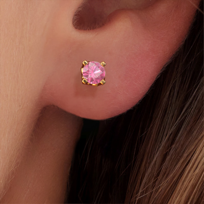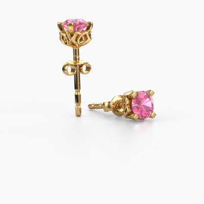 The solitaire gold Ize earrings are set with stunning round pink sapphire. These earrings are ideally combined with coloured gemstones, but if you prefer other gemstones, feel free to choose from our collection. Our expert jewellers would love to create handmade earrings for you in our own crafting studio. We use a unique concept, a perfect combination of ancient craftsmanship and the latest modern techniques. This enables us to design your earrings to perfection. The earrings, as shown here, are set with pink sapphire 5 mm. The best part of these solitaire earrings is that you can customize it to your own liking. Your style, your choice, your earrings. On top of that, your vintage gold earrings will be made by hand with eco-friendly materials! Please feel free to easily customize the earrings, using our online tool.De Ize earrings are made just for you by our master goldsmith in our own artisan studio.Are you on a budget? Please feel free to contact us, so we can go discuss your options. We offer our earrings at guaranteed best price, because we make them to order. You won't find such a price anywhere else!To make it easier for you, we offer a 30 day return policy. Check our terms and conditions.