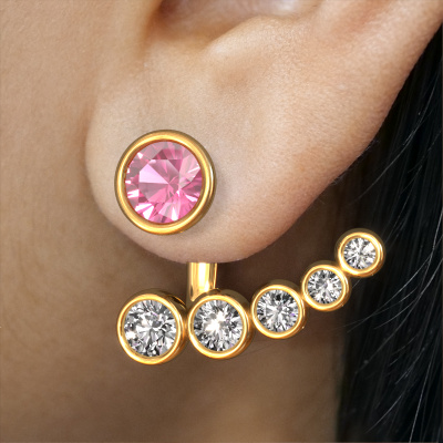 How would you describe your style? Are you looking for something slightly different? These contemporary special gold earrings are unique and created by our expert goldsmiths. These contemporary earrings are set with pink sapphire. Each of the pink sapphire is carefully selected, because we believe your earrings should be adorned with nothing but the most exquisite gemstones. Wouldn't you agree? The Wendy earrings are passionately made by one of our master goldsmiths.. Customized contemporary special earrings are the perfect gift! New exquisite designs are added daily by our team of passionate goldsmiths. And each design can be customized. Simply customize the precious metals and the colour of gemstones which will be used, for example. This makes your design of the contemporary Wendy earrings truly unique!Because we design and deliver our own earrings, we can offer you earrings at a price you won't find anywhere else. earrings are made to order, which helps prevent excess supplies, so we can make you a great price offer. We understand it feels risky, buying your earrings online, but we will gladly assist in the designing process, taking your budget into consideration. To make it easier for you, we offer a 30 day return policy. Check our terms and conditions.