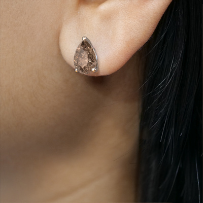 Solitaire stud earrings are both a traditional and a trendy piece of jewellery. Solitaire stud earrings have an open prong setting, therefore, light reflects beautifully on the gemstones. Because the brown diamonds are set high, these traditional stud earrings are a stunning eye-catcher. We will create your solitaire stud earrings by hand with the utmost care in our DiamondsByMe studio. For maximum shine, our goldsmith sets the brown diamonds in the platinum stud earrings with great care. These solitaire stud earrings are set with pear brown diamond of 0.65 crt. De Sam PER earrings are passionately made by one of our master goldsmiths.. What could possibly be more beautiful than personally designed traditional stud earrings, handmade by yours truly? Please, feel free to customize each model by choosing different precious metals and gemstones. This makes your stud earrings truly unique. These stud earrings can be customized to your liking. It goes without saying that you can also ask us for help. We are more than willing to assist in designing your traditional stud earrings. If you like but still have specific wishes concerning customizing your design, such as adding a gemstone which isn't mentioned in the list, feel free to contact us. We will gladly inform you on different options.By using a combination of the latest modern techniques, combined with ancient crafting, we can make all our stud earrings in our own studio. Each jewel is made to order. This is advantageous because we can offer you a price you won't find anywhere else. To make it easier for you, we offer a 30 day return policy. Check our terms and conditions.