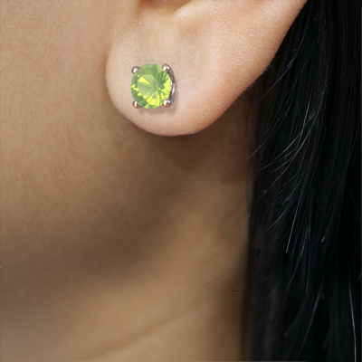 Solitaire stud earrings are both a classic and a trendy piece of jewellery. Solitaire stud earrings have an open prong setting, therefore, light reflects beautifully on the gemstones. Because the peridot are set high, these classic stud earrings are a stunning eye-catcher. We will create your solitaire stud earrings by hand with the utmost care in our DiamondsByMe studio. For maximum shine, our goldsmith sets the peridot in the platinum stud earrings with great care. These solitaire stud earrings are set with round peridot of 5 mm. De Sam RND earrings are unique pieces of jewellery because they can be customized to your liking.. The best part of these solitaire stud earrings is that you can customize it to your own liking. Your style, your choice, your stud earrings. On top of that, your classic platinum stud earrings will be made by hand with eco-friendly materials! Please feel free to easily customize the stud earrings, using our online tool.After receiving your order, our goldsmiths will passionately start the creative process of making your stud earrings in our own studio. Because we don't have a big stockpile, these costs will not be passed on to you. Our pricing is proof of that! We offer top quality jewels at lowest price, guaranteed. To make it easier for you, we offer a 30 day return policy. Check our terms and conditions.