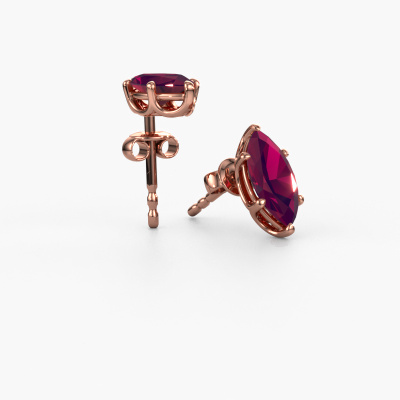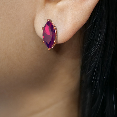 Solitaire stud earrings are fantasy yet fashionable pieces of jewellery. In solitaire stud earrings, the prong setting is open and only 1 stone is set, which helps reflect light on the gemstone from every angle. Because the rhodolite are positioned higher, these fantasy stud earrings become truly eye-catching. We carefully create each detail of these solitaire stud earrings by hand. Our expert goldsmiths set the rhodolite in these rose gold stud earrings with the utmost precision, so light reflects evenly from every angle. The stud earrings are set with 10x5 mm marquise rhodolite. The Sam MRQ earrings are passionately made by one of our master goldsmiths.. Our goldsmiths passionately create your customized stud earrings to your liking with the utmost care. The rose gold set stud earrings, as shown here, can be customized using our online tool. Feel free to ask our jewel designers for assistance if you want changes made which are unavailable in our online tool. We are happy to answer your questions. By using a combination of the latest modern techniques, combined with ancient crafting, we can make all our stud earrings in our own studio. Each jewel is made to order. This is advantageous because we can offer you a price you won't find anywhere else. To make it easier for you, we offer a 30 day return policy. Check our terms and conditions.