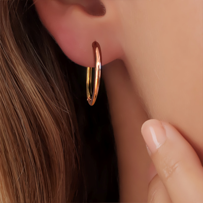 This set of round rose gold Aya 23 hoop earrings are beautiful small hoop earrings to finish off your look. Our expert jewellers combine the latest techniques with ancient craftsmanship. They make your hoop earrings by hand in our own crafting studio. In the end you get stunning, unique hoop hoop earrings that match your own style perfectly! Customized trendy round hoop earrings are the perfect gift! New exquisite designs are added daily by our team of passionate goldsmiths. And each design can be customized. Simply customize the precious metals and the colour of gemstones which will be used, for example. This makes your design of the trendy Aya 23 hoop earrings truly unique!The Aya 23 earrings are passionately made by one of our master goldsmiths.After receiving your order, our goldsmiths will passionately start the creative process of making your hoop earrings in our own studio. Because we don't have a big stockpile, these costs will not be passed on to you. Our pricing is proof of that! We offer top quality jewels at lowest price, guaranteed.To make it easier for you, we offer a 30 day return policy. Check our terms and conditions.