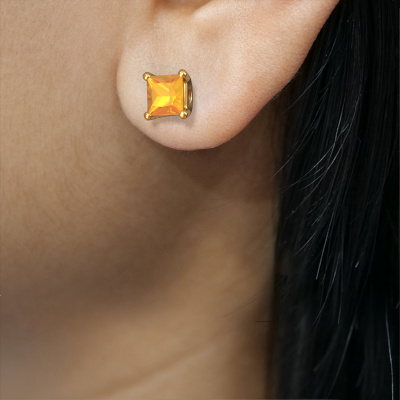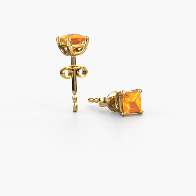 Solitaire stud earrings are contemporary yet fashionable pieces of jewellery. In solitaire stud earrings, the prong setting is open and only 1 stone is set, which helps reflect light on the gemstone from every angle. Because the citrin are positioned higher, these contemporary stud earrings become truly eye-catching. We carefully create each detail of these solitaire stud earrings by hand. Our expert goldsmiths set the citrin in these gold stud earrings with the utmost precision, so light reflects evenly from every angle. The stud earrings are set with 4 mm princess citrin. The Sam SQR earrings are made to embellish your ears. Each jewel is lovingly made by hand by our goldsmiths.. Our goldsmiths passionately create your customized stud earrings to your liking with the utmost care. The gold set stud earrings, as shown here, can be customized using our online tool. Feel free to ask our jewel designers for assistance if you want changes made which are unavailable in our online tool. We are happy to answer your questions. By using a combination of the latest modern techniques, combined with ancient crafting, we can make all our stud earrings in our own studio. Each jewel is made to order. This is advantageous because we can offer you a price you won't find anywhere else. To make it easier for you, we offer a 30 day return policy. Check our terms and conditions.