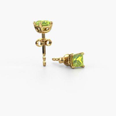 Solitaire stud earrings are contemporary yet fashionable pieces of jewellery. In solitaire stud earrings, the prong setting is open and only 1 stone is set, which helps reflect light on the gemstone from every angle. Because the peridot are positioned higher, these contemporary stud earrings become truly eye-catching. We carefully create each detail of these solitaire stud earrings by hand. Our expert goldsmiths set the peridot in these gold stud earrings with the utmost precision, so light reflects evenly from every angle. The stud earrings are set with 4 mm princess peridot. The Sam SQR earrings are made to embellish your ears. Each jewel is lovingly made by hand by our goldsmiths.. Our goldsmiths passionately create your customized stud earrings to your liking with the utmost care. The gold set stud earrings, as shown here, can be customized using our online tool. Feel free to ask our jewel designers for assistance if you want changes made which are unavailable in our online tool. We are happy to answer your questions. By using a combination of the latest modern techniques, combined with ancient crafting, we can make all our stud earrings in our own studio. Each jewel is made to order. This is advantageous because we can offer you a price you won't find anywhere else. To make it easier for you, we offer a 30 day return policy. Check our terms and conditions.